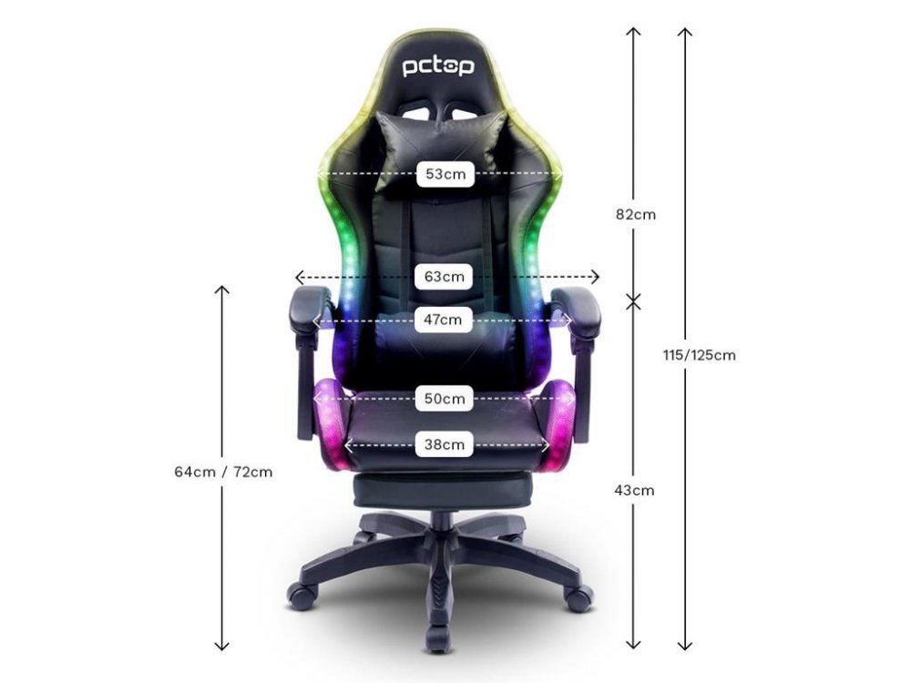 0083066-01 PCTOP CADEIRA GAMER Starlight R1006E RGB COM AJUSTE DE ALTURA, SUPORTA 120 KG, RECLINA ATÉ 135 GRAUS