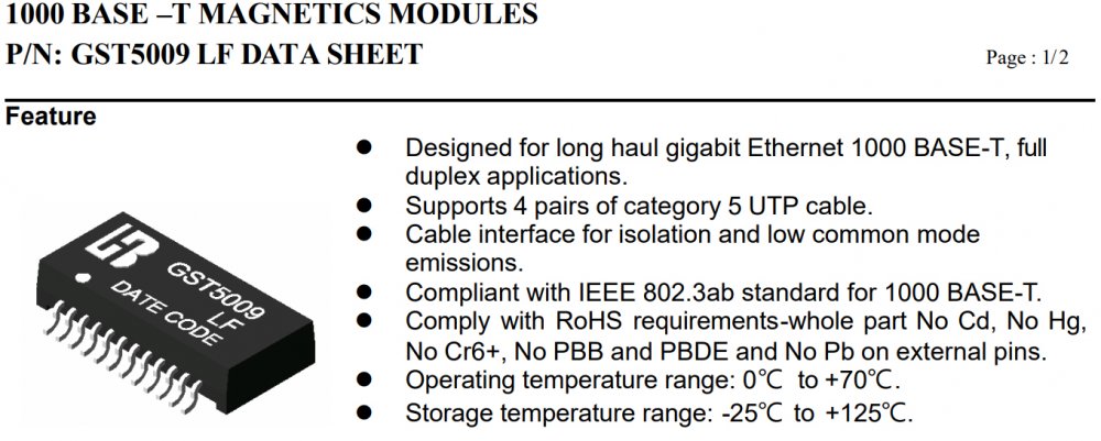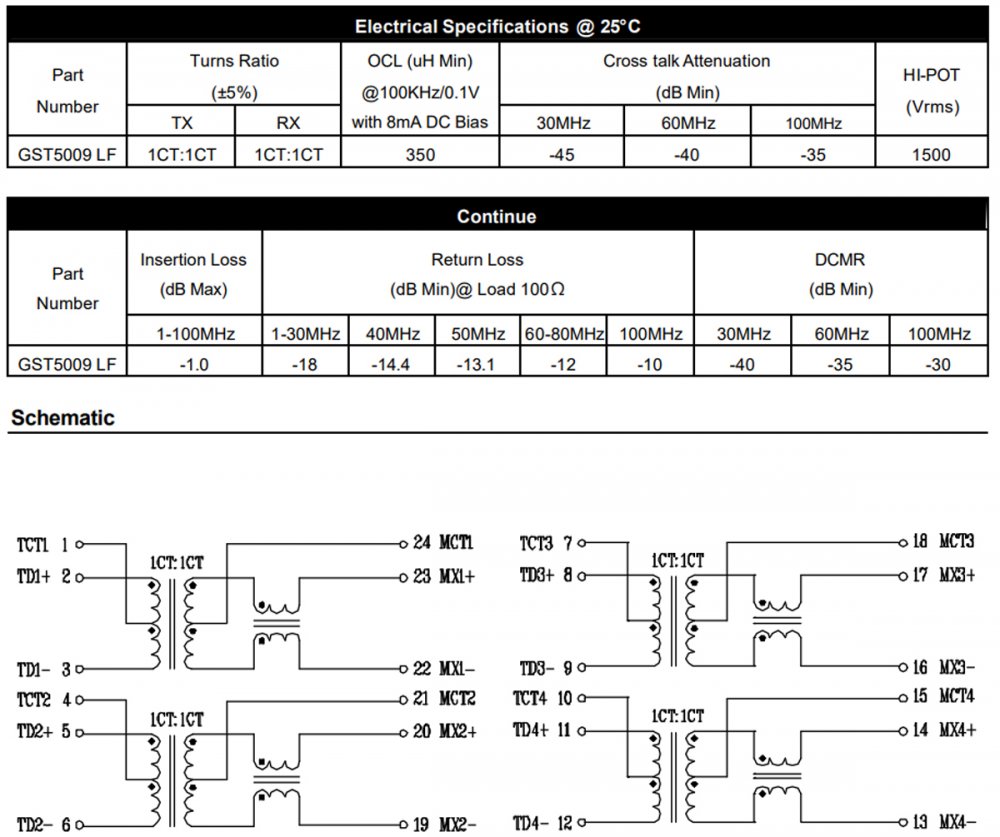 09G051059055 2x Transformer GST500 GST5009 GST5009 LF 1000 Base-T
