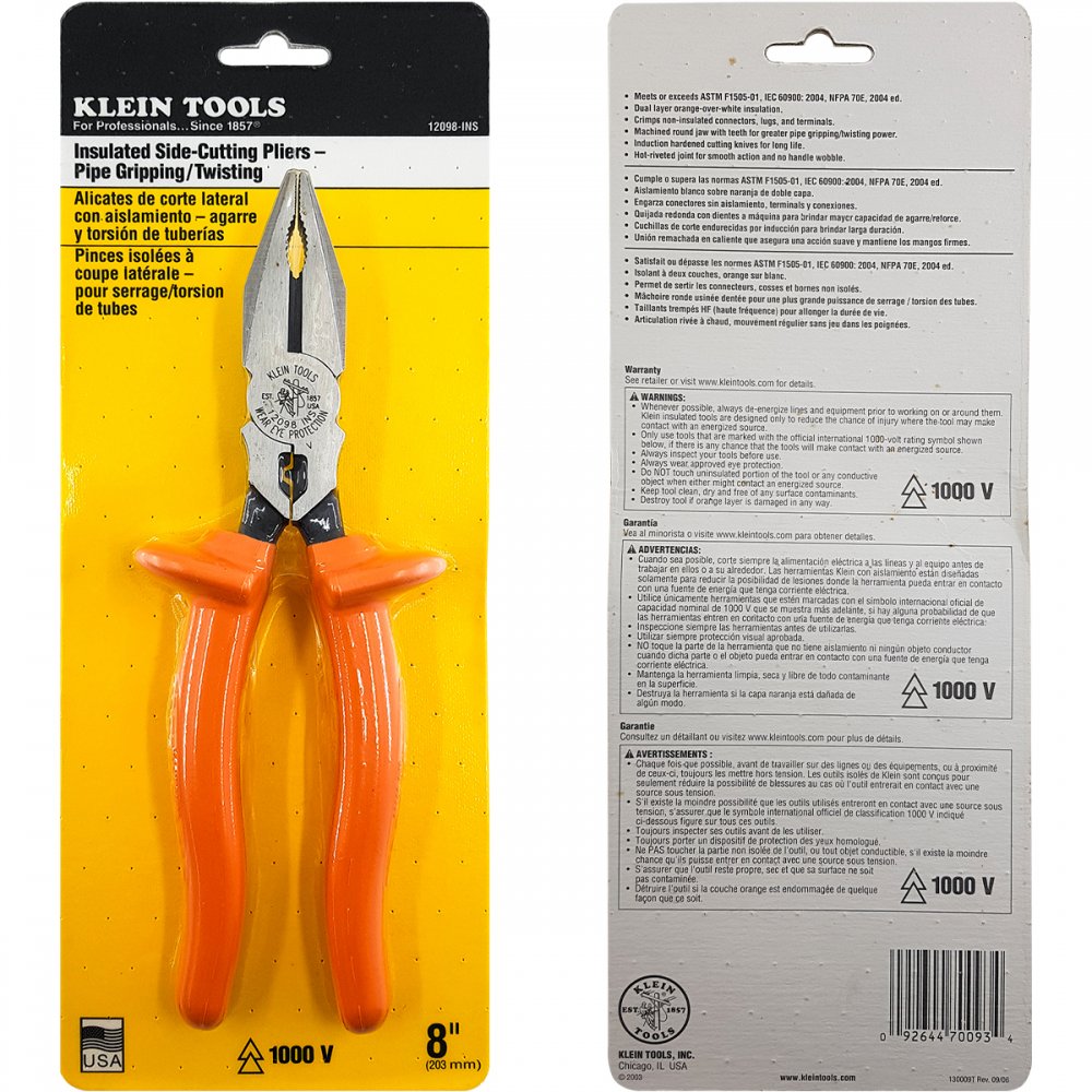 Tags de 12098-INS: 12098-INS, 12098INS, 12098 INS, alicates universais, Alicate universal isolado de corte lateral, Crimpagem de conector, ferramente klein tools, alicate klein tools, 12098EINS, 12098-EINS, Alicate de corte isolado, alicate professional isolado de corte, alicate de corte e crimpagem, alicate de climpagem e corte, Alicate de corte lateral para crimpagem isolado, 63050-EINS, =12098-INS, Klein Tools