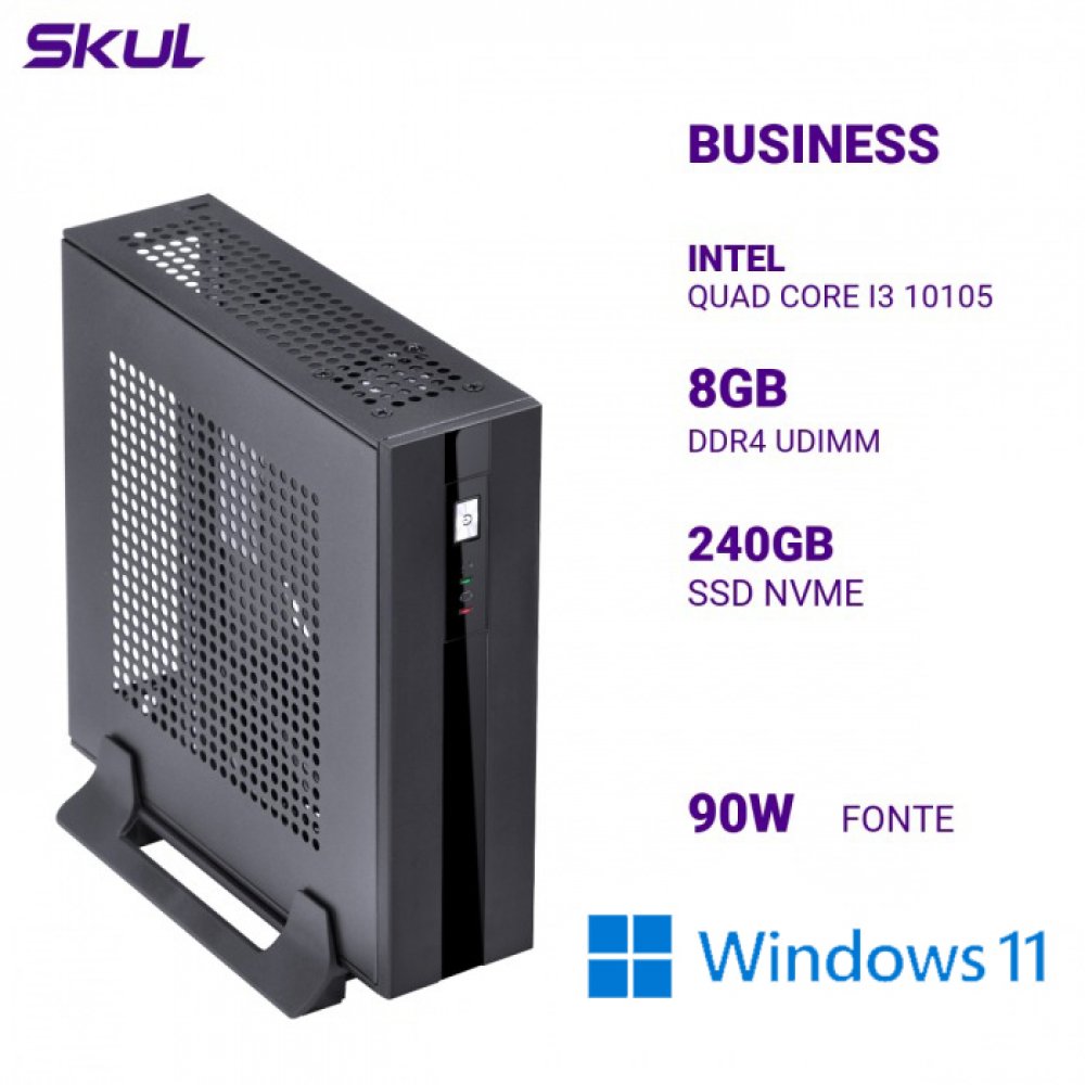 134094-Win Skul Mini Computador Business B300 Intel Core I3 10105 Quad Core 3.70GHz Ram 8GB DDR4 SSD 240GB NVMe Fonte 90W Windows 11