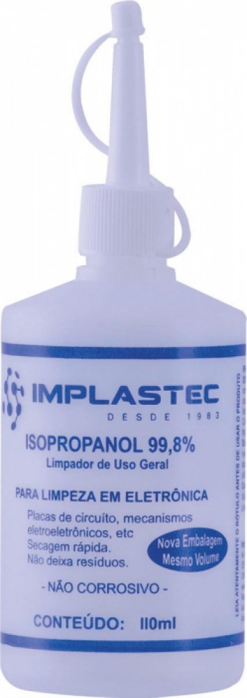 Tags de 15065: 15065, PAIP011060, álcool isopropilico implastec 110ml, isopropanol, limpador eletrônico, limpeza em eletrônica, alcool para eletronica, alcool isopropilico para limpeza de placas eletronicas, alcool para limpar placa mae, alcool isopropilico com bico aplicador, IMPLASTEC