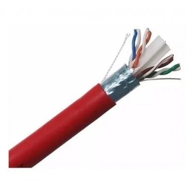 Cabo de 4 pares trançados compostos de condutores sólidos de cobre nu, 24 AWG, isolados em polietileno especial, com blindagem helicoidal em fita metalizada. Capa externa em PVC não propagante à chama, na cor vermelha, com marcação seqüencial métrica, na opção CM.