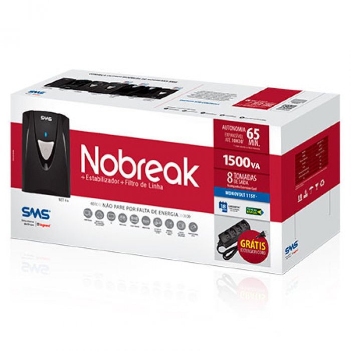 27296 SMS Nobreak 1500VA Bivolt 115 NET4+ 5 Tomadas Semi Senoidal (descontinuado, ver 29401)