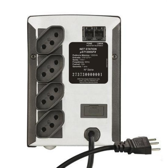 27388 Nobreak SMS Net Station 1200VA Bivolt Tomada Padrao NBR 14136, Entrada: 115/127V~ ou 220V~, Saída: 115V~, Autodiagnóstico de Bateria, Inv