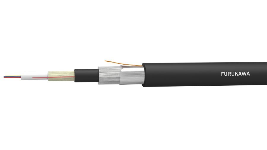 Cabo óptico dielétrico formado por um tubo loose único central, protegido contra penetração de umidade e com proteção dielétrica contra roedores. Capa externa em material termoplástico não propagante à chama e resistente a intempéries na cor preta.
