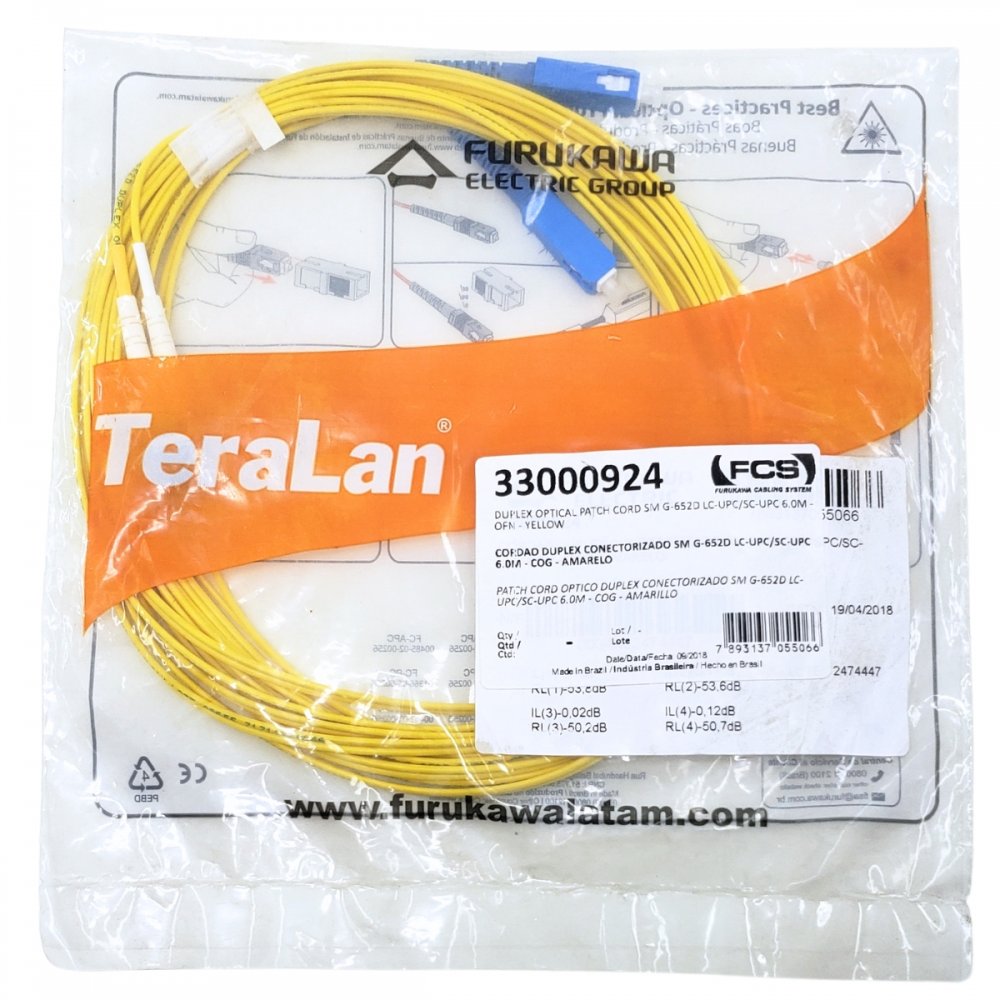 33000924 Furukawa Cordão Duplex Monomodo LC/SC-UPC 6M