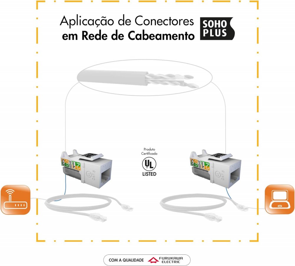 35050413 Furukawa CONECTOR FEMEA SOHOPLUS CAT.6 T568A/B T568A/B Gigalan Branco 22 a 26 AWG