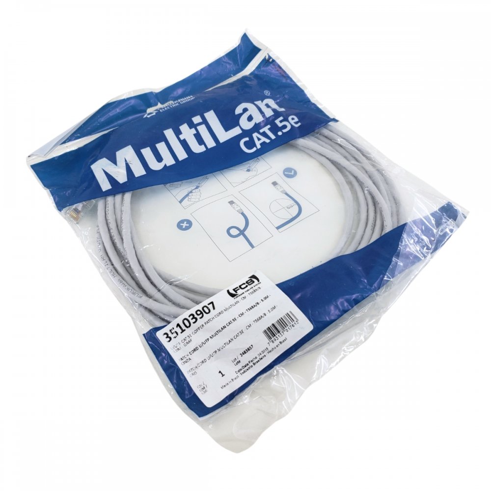 35103907 Furukawa patch cord rede U/UTP multilan CAT5E T568A 5 metros Cinza