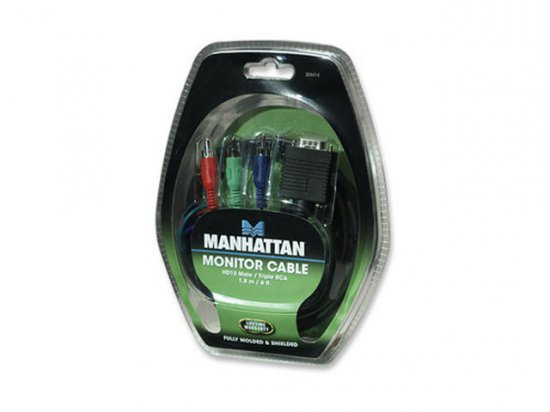 384414 Manhattan Cabo Monitor RGB HD 15 Macho/Video Componente 1,8 metros de comprimento, Conecta HD15 Macho Para 03 RCA (Red/Green/Blue),