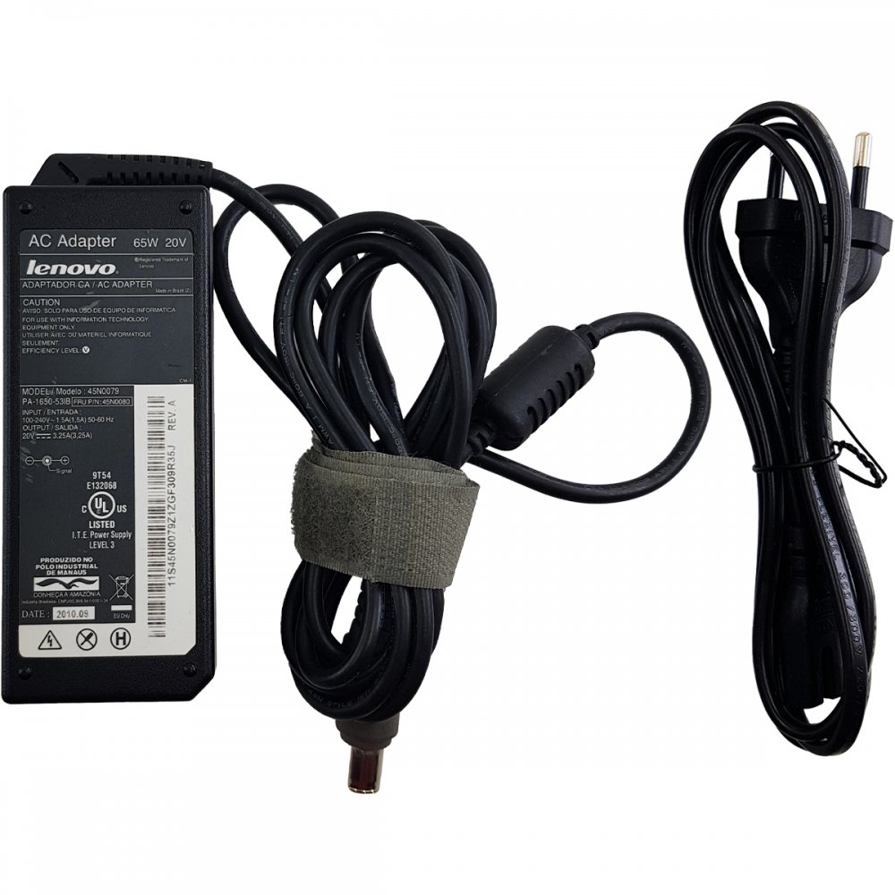 45N0079 Fonte Lenovo original 3.25A 20V 65W 7.9x5.5mm acompanha cabo de energia bipolar