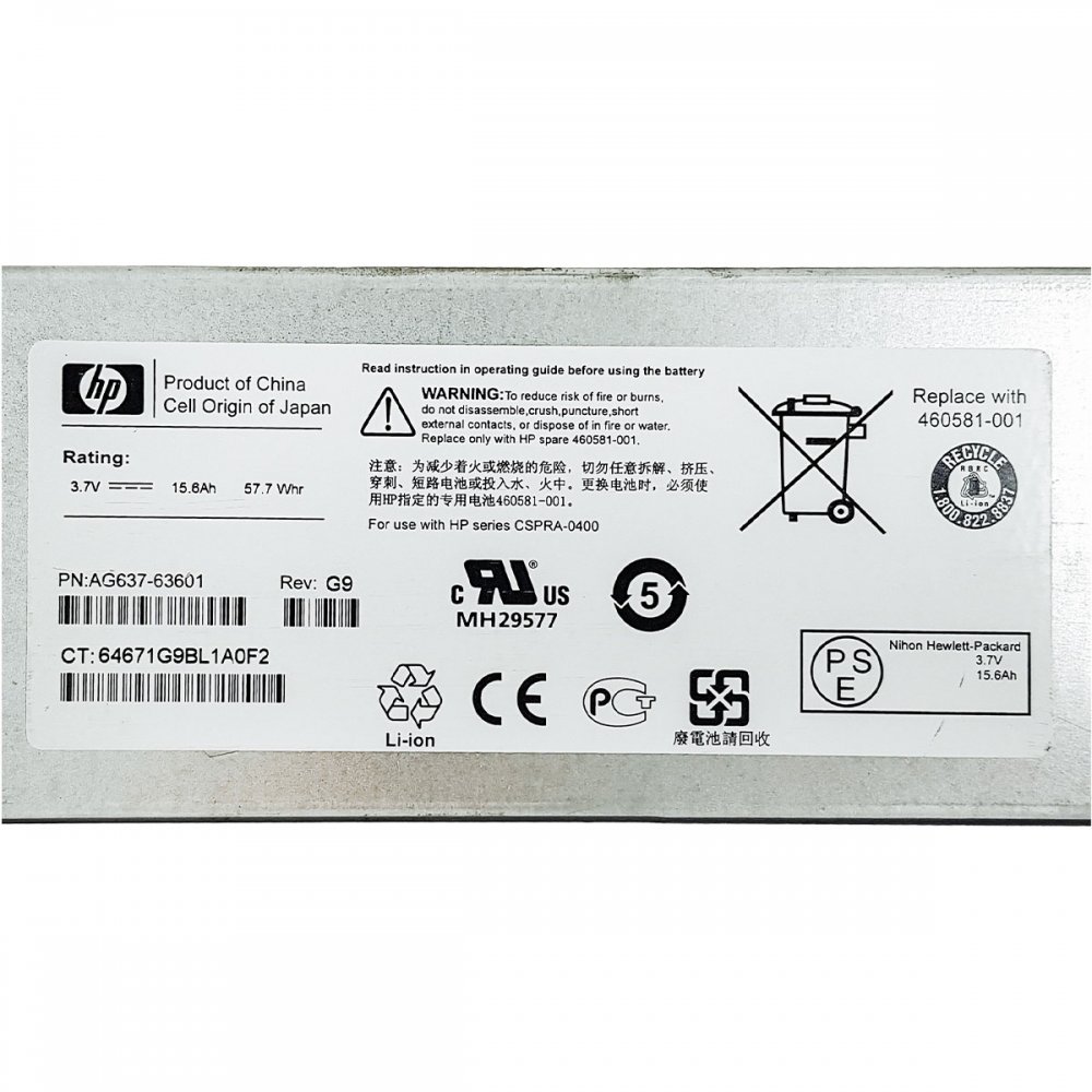 460581-001 HPE Battery array assembly AG637-63601 for EVA 4400 P6300 / Tensão de de trabalho de 3.7V 15.6A