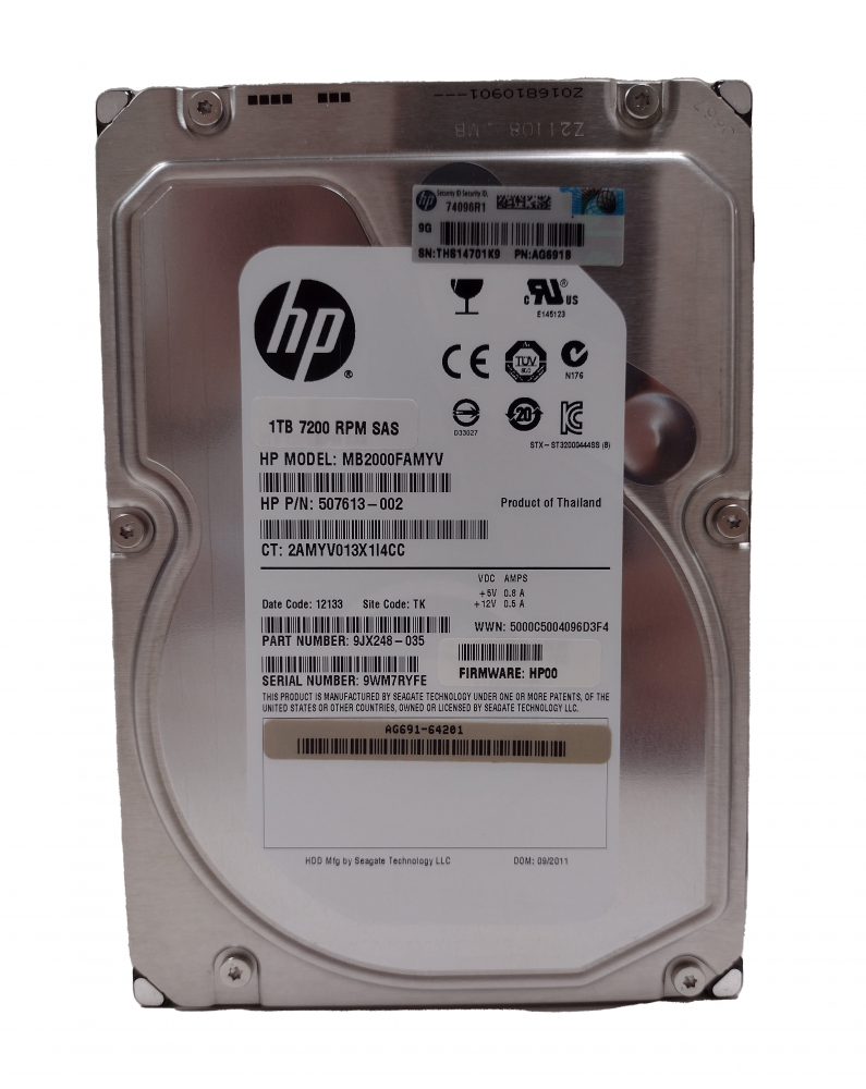 507613-002 HP HD 1TB 6G SAS 7.2K rpm LFF 3.5 POL DP MIDLINE