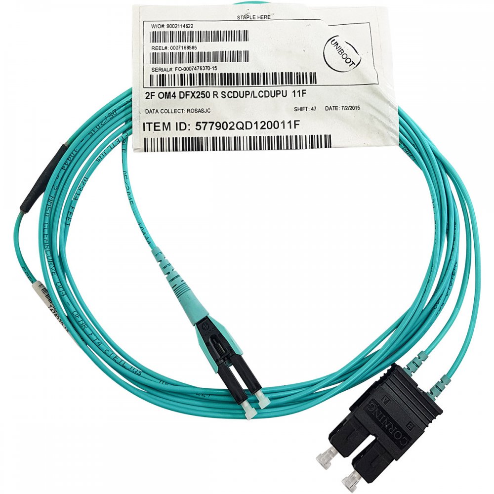 577902QD120011F Corning cordão duplex OM4 SC-PC/LC-PC Uniboot 3.35m