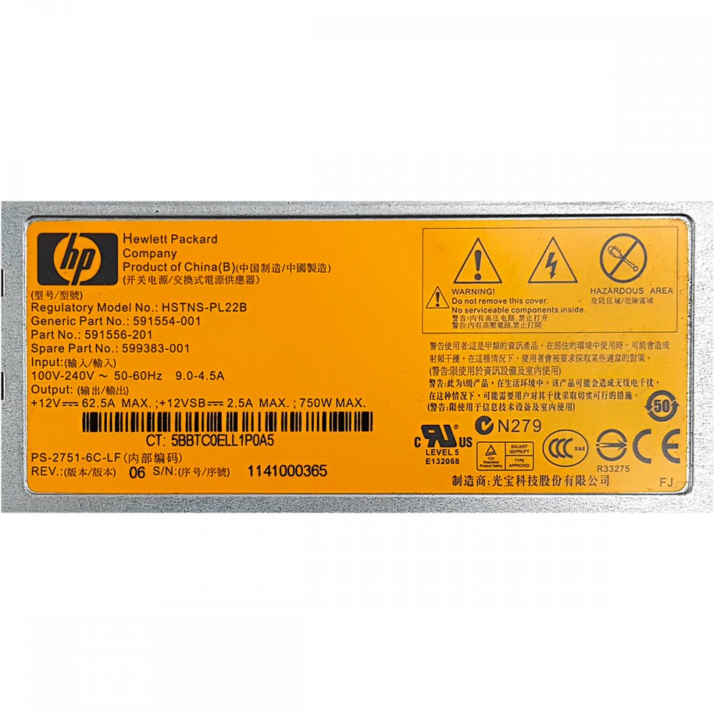 Outros PNs para este componente: DPS-750UB B, HSTNS-PD22B, 591556-001, 599383-001