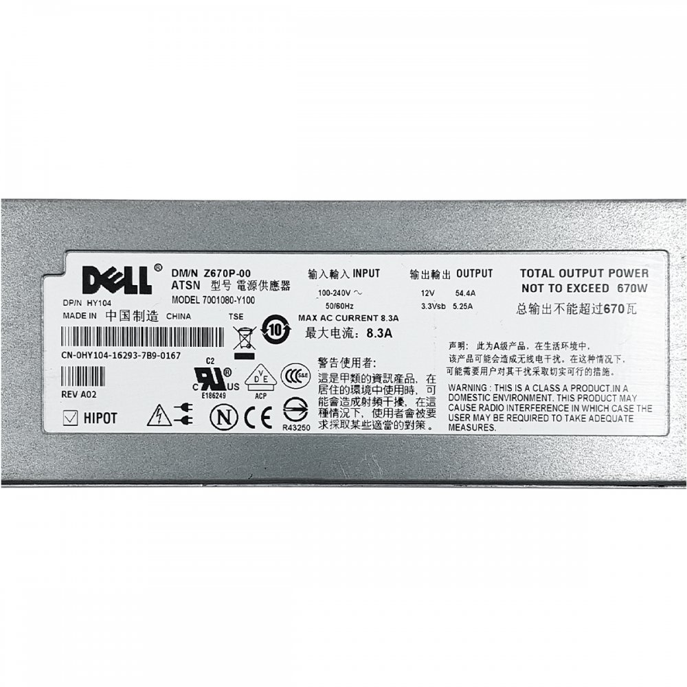 7001080-Y100 DELL Fonte Redundante 670W para DELL PowerEdge 1950
