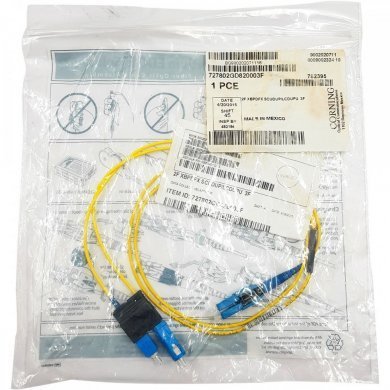 727802GD820003F Corning cordão duplex SM OS2 SC-UPC/LC-UPC 91cm 3ft monomodo 9/125 amarelo DFX 250 plenum