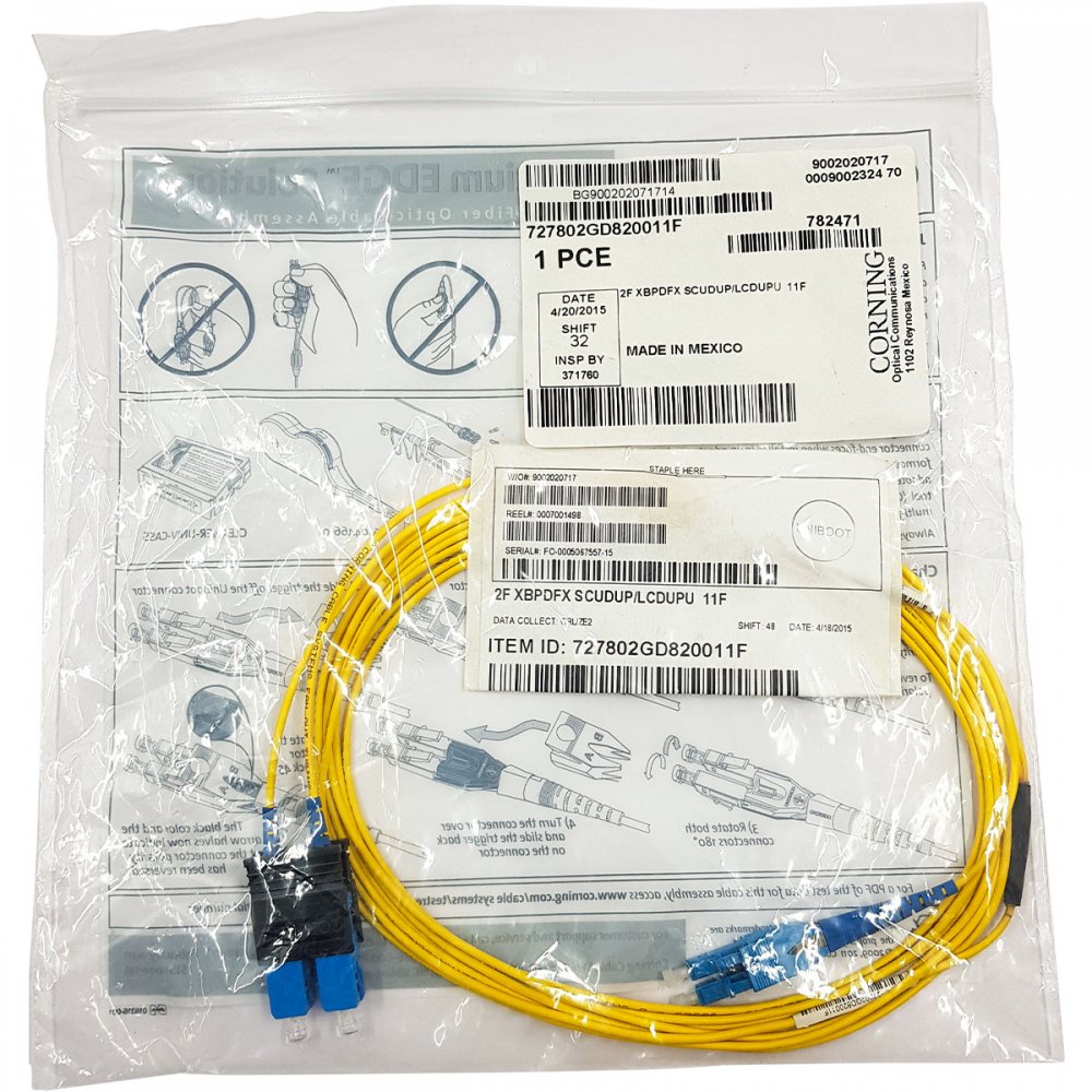 727802GD820011F Corning cordão duplex SM OS2 SC-UPC/LC-UPC 3.35m
