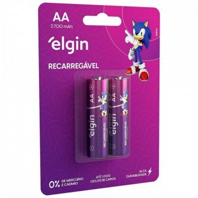 82174 Elgin Pilha Recarregável AA 2700mAh 1.2v 2 unidades até 1000 ciclos de carga