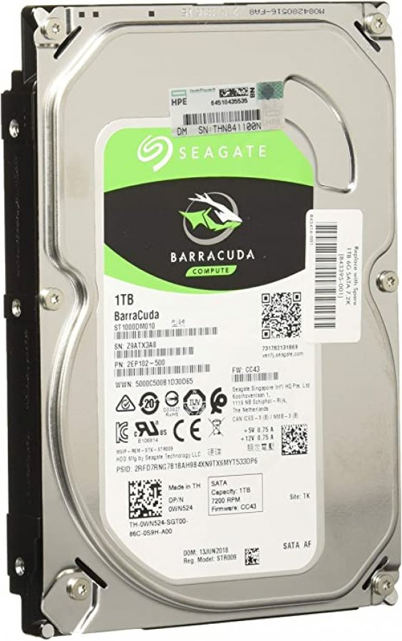 843266-B21 HPE HD SATA 1TB 6G 7.2K 3.5 Polegadas LFF Non-Hot Plug Entry 512e, Compatível com Proliant MicroServer G10