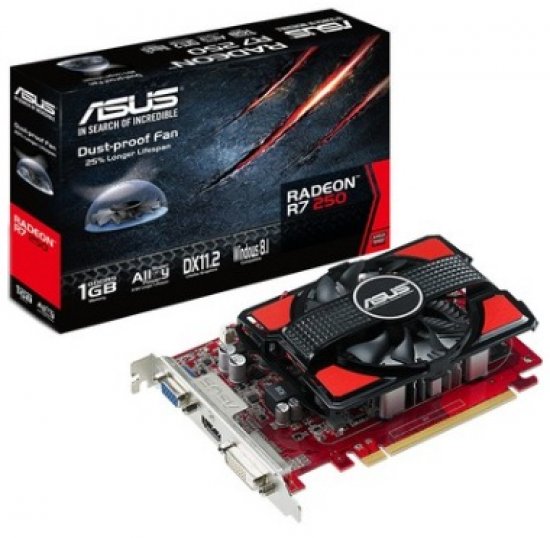 90YV0920-M0NA00 Placa de Vídeo ASUS AMD Radeon R7 250 1GB GDDR5 128Bits GPU Clock 1050MHz PCI-E 3.0 VGA/DVI/HDMI