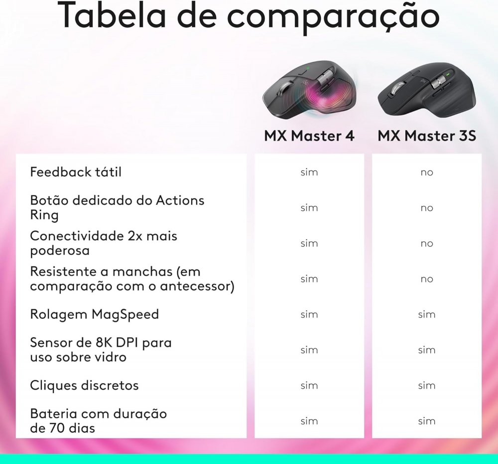 O foco em produtividade se estende à autonomia energética e integração de software. O MX Master 3S Bluetooth Edition permanece ligado por até 70 dias com uma única carga completa, garantindo que você nunca seja interrompido no meio de um projeto importante. Caso precise de energia imediata, uma carga rápida de apenas 1 minuto fornece até 3 horas de uso contínuo.