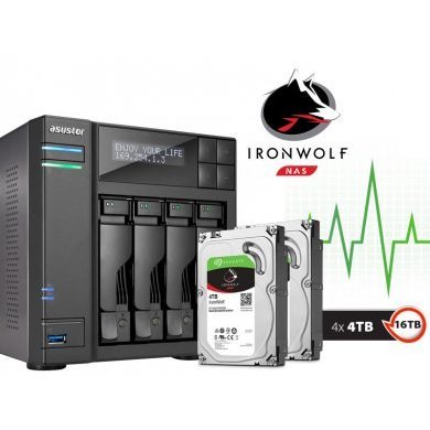 AS6204T16000 Asustor NAS 4 Baias 16TB J3160 1,6GHZ Celeron Quad Core, Memória 4GB DDR3L, Acompanha 4 HDs de 4TB Seagate ST4000VN008 IRONWOLF