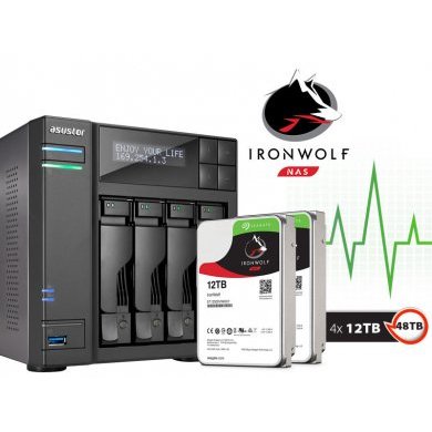 AS6204T48000 Asustor NAS 4 Baias 48TB J3160 1,6GHZ Celeron Quad Core, Memória 4GB DDR3, Acompanha 4 HDs 12TB Seagate ST12000VN0007 IRONWOLF