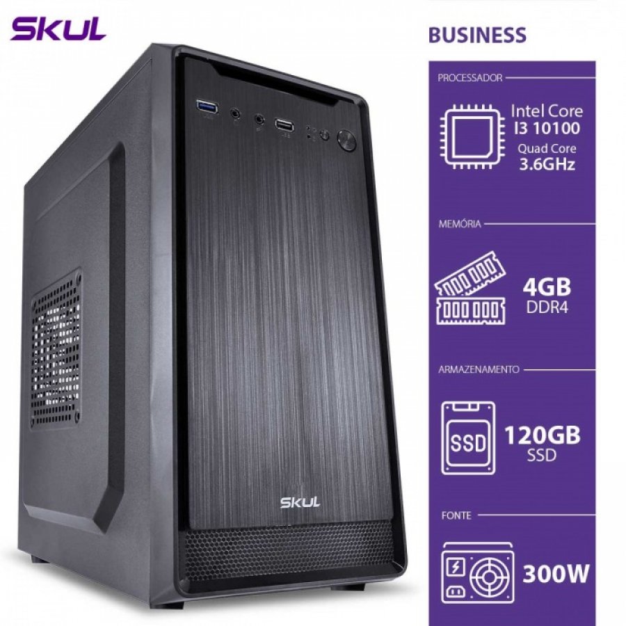 B101001204 Skul Computador Business B300 Intel Core I3 I3 10100 3.6GHZ CORE 4GB DDR4 SSD 120GB HDMI/VGA FONTE 300W LINUX