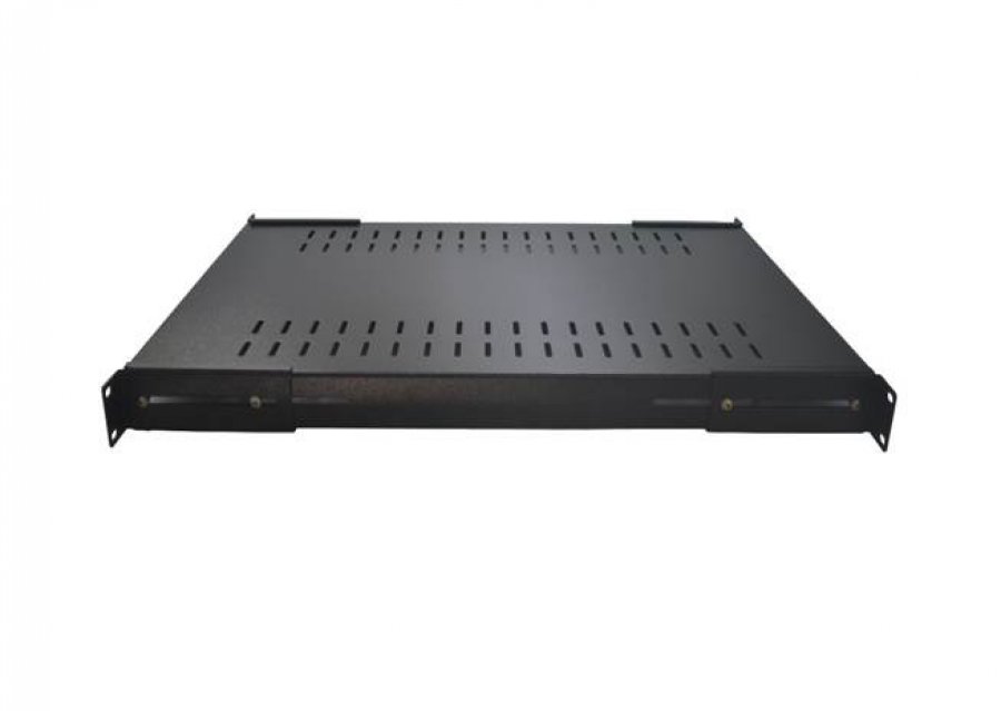 Bandeja fixa perfurada para rack de 19 polegadas com altura de 1U.