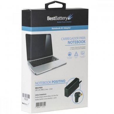 BB20-PO20 BestBattery Fonte para Notebook 20V 2.0A 40W Diâmetro pino 5.5mm - 2.5mm Compatível com Positivo Unique CCE Ultra Thin Lenovo IdeaPad e Outros