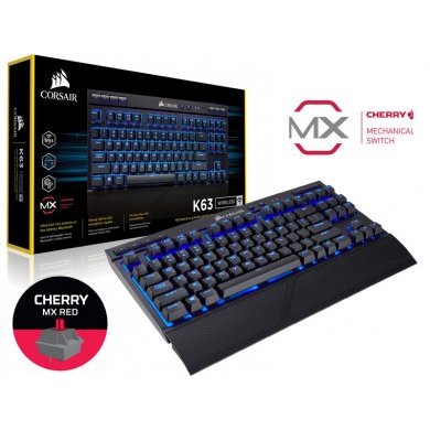 CH-9145030-BR Corsair Teclado Gamer K63 Mecanico sem fio Retroiluminação Blue Cherry MX RED