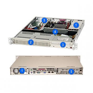 CSE-811i-420B Gabinete Rack 1U SUPERMICRO CSE-811i-420B com Fonte de 420Watts, 420W Power Supply / 2x 3.5 Internal Drive Bay, 1x Slim CDROM 24x / 1x Floppy Drive (Optional), 2x
