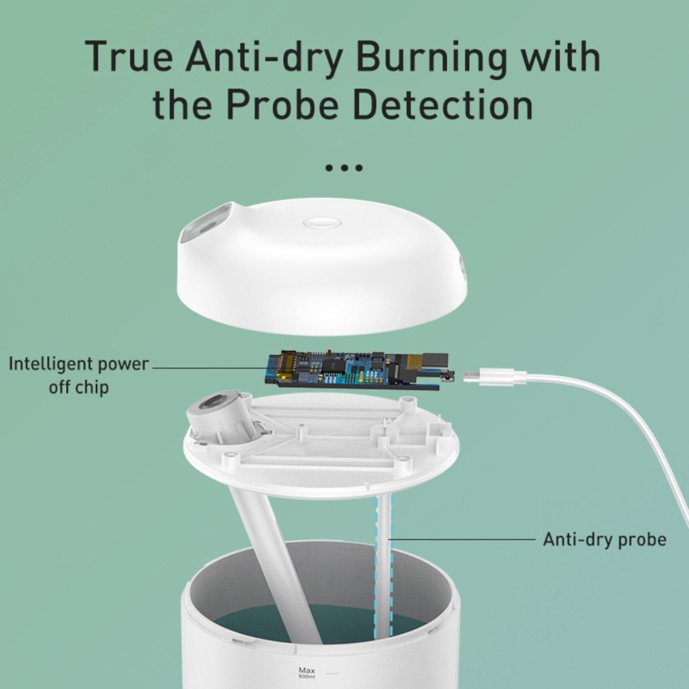 DHXX-02 Baseus umidificador de ar difusor ultra sônico USB branco capacidade de 600ml e LED Lamp Fogger Mist Maker