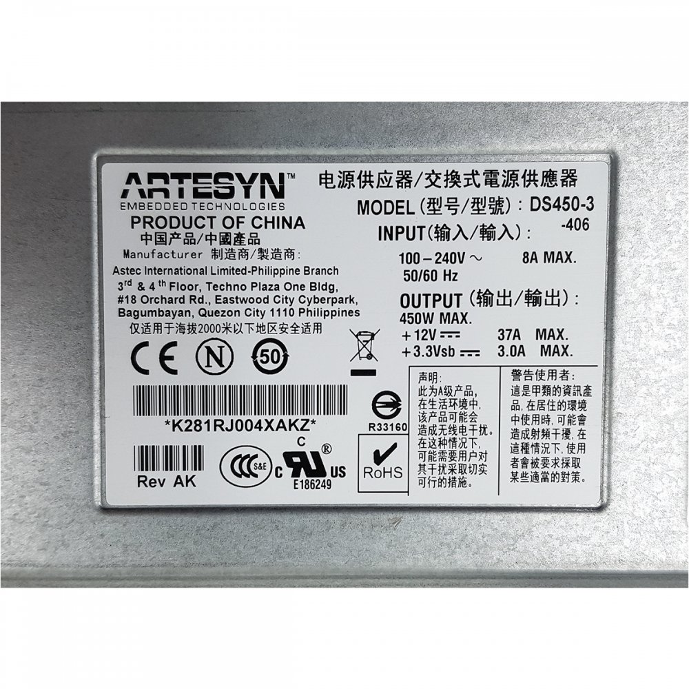 Tags de DS450-3: DS450-3, DS450 3, DS4503, AC Power Supply, fonte 12V 37A, Artesyn, FONTE 450W, Artesyn
