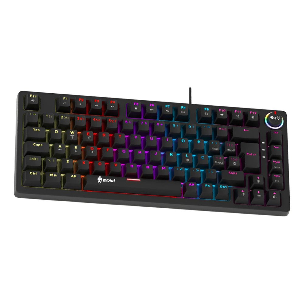 EG275 Evolut teclado gamer mecânico EG275 Class 75% preto com knob de volume, switch marrom, ABNT2, Led com 17 efeitos