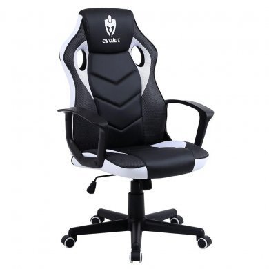 EG908-BCO Evolut Cadeira Gamer Hunter Preto e Branco 120Kg