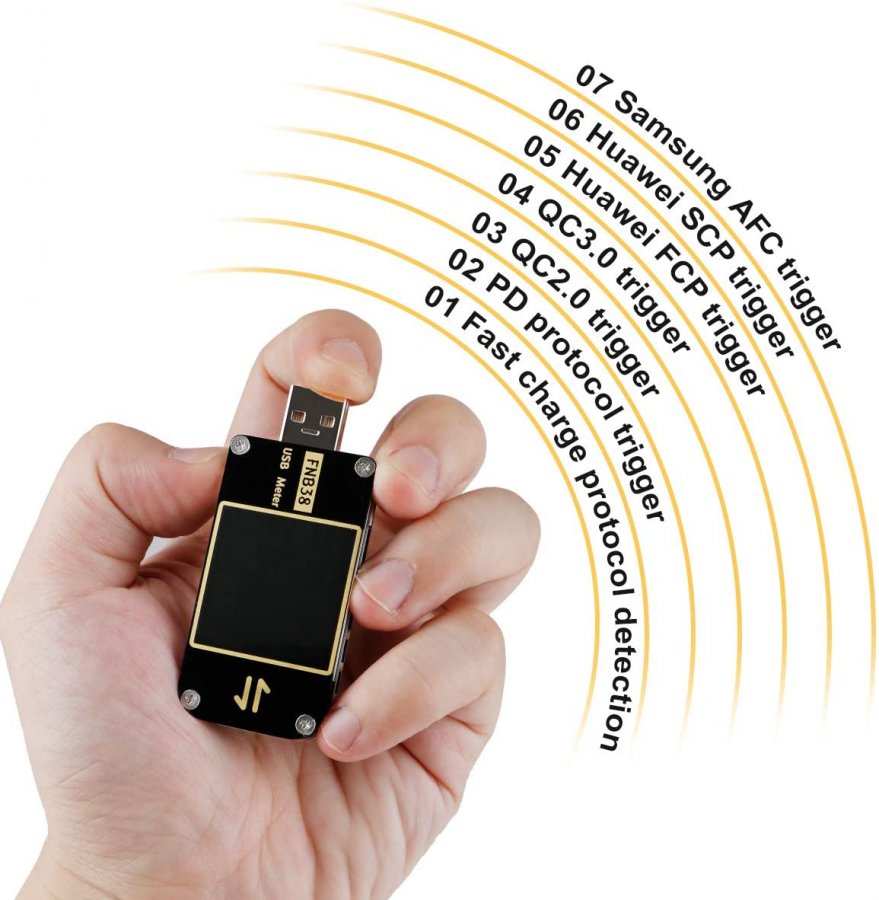 FNB38 Medidor de Corrente Tensão USB DC 4-24V 0-5A QC4 + PD3.0 2.0 PPS Teste de Capacidade de Protocolo de Carregamento Rápido