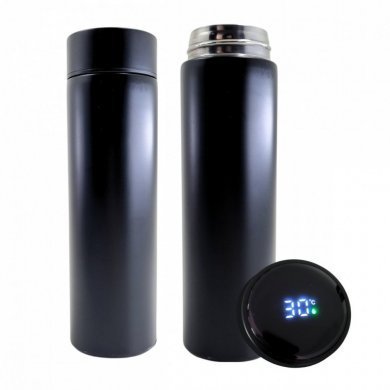 GAR-TERMICA-PTO Garrafa térmica 500mL inox com termômetro preta