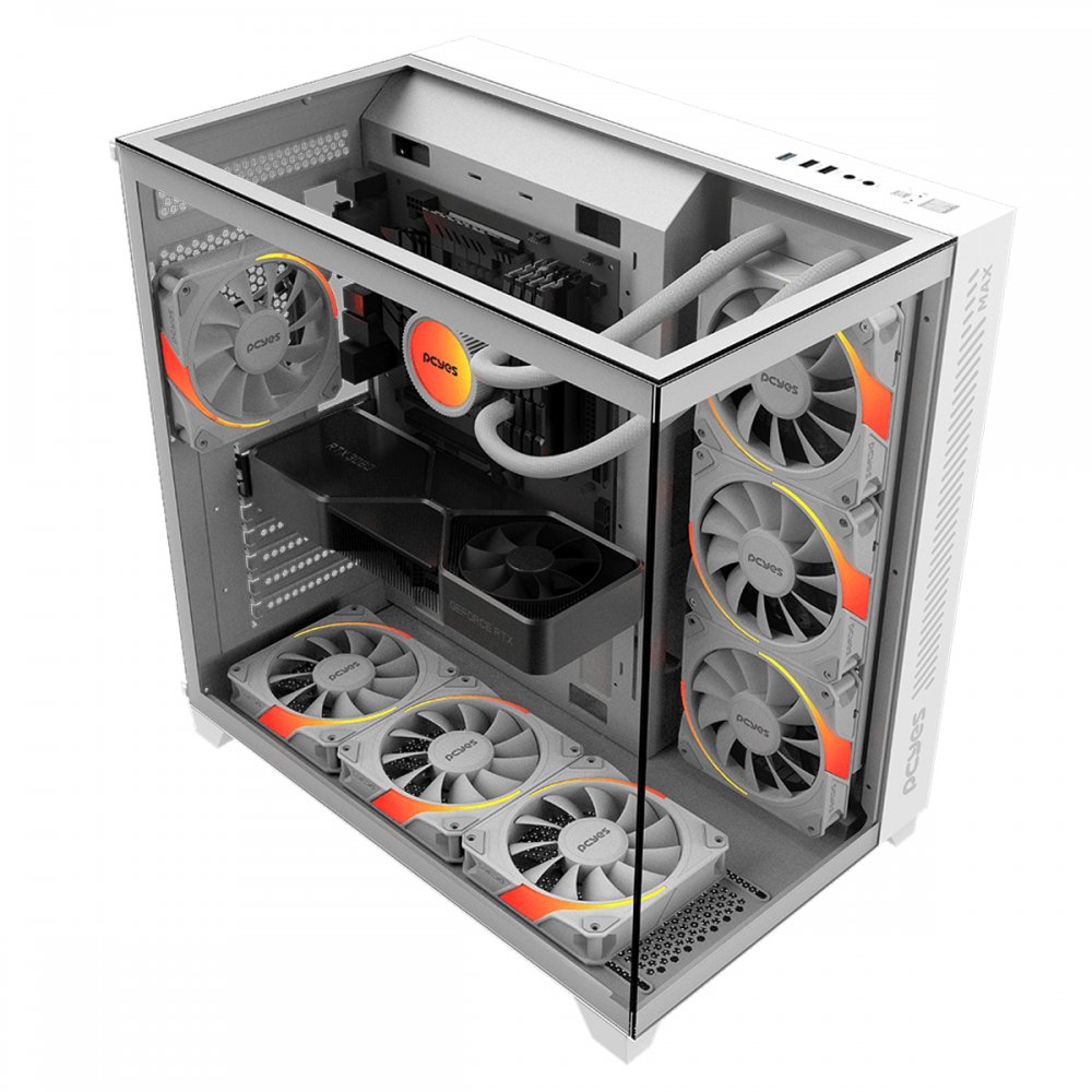Tags de GFFMAXWG: Gabinete Pcyes, Forcefield Max, White Ghost, gabinete branco, gabinete gamer branco, setup white, pc branco, vidro temperado, frontal de vidro, lateral de vidro, gabinete aquário, vitrine gamer, mid tower, gabinete ATX, case gamer branco, pc gamer, Pcyes original, hardware, casemod, montar pc, espaço para water cooler, cable management, gabinete sem fonte, refrigeração pc, pc custom, componentes pc, upgrade pc, pc iluminado, gabinete premium, gabinete matx, gabinete mid tower, GFFMAXWG, CP252558, 252558,, PCYES