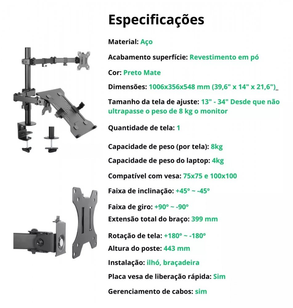 GT800 Giant suporte para monitor e notebook articulado