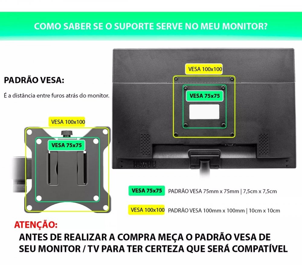 para monitores de 17 à 32 polegadas, VESA 75x75 e 100x100