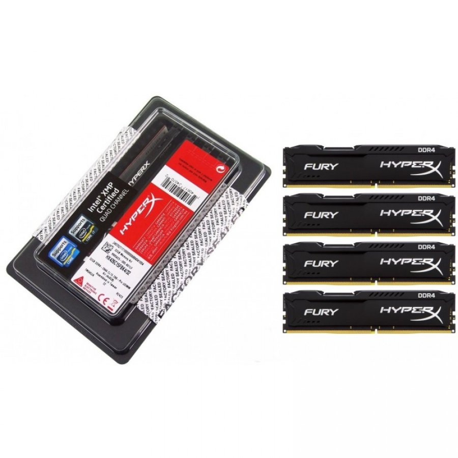 HX424C15FBK4/16 Memoria Kingston HyperX Fury 16GB DDR4 Kit com 4 pentes de 4GB, 288-Pin DDR4 SDRAM 2400MHz