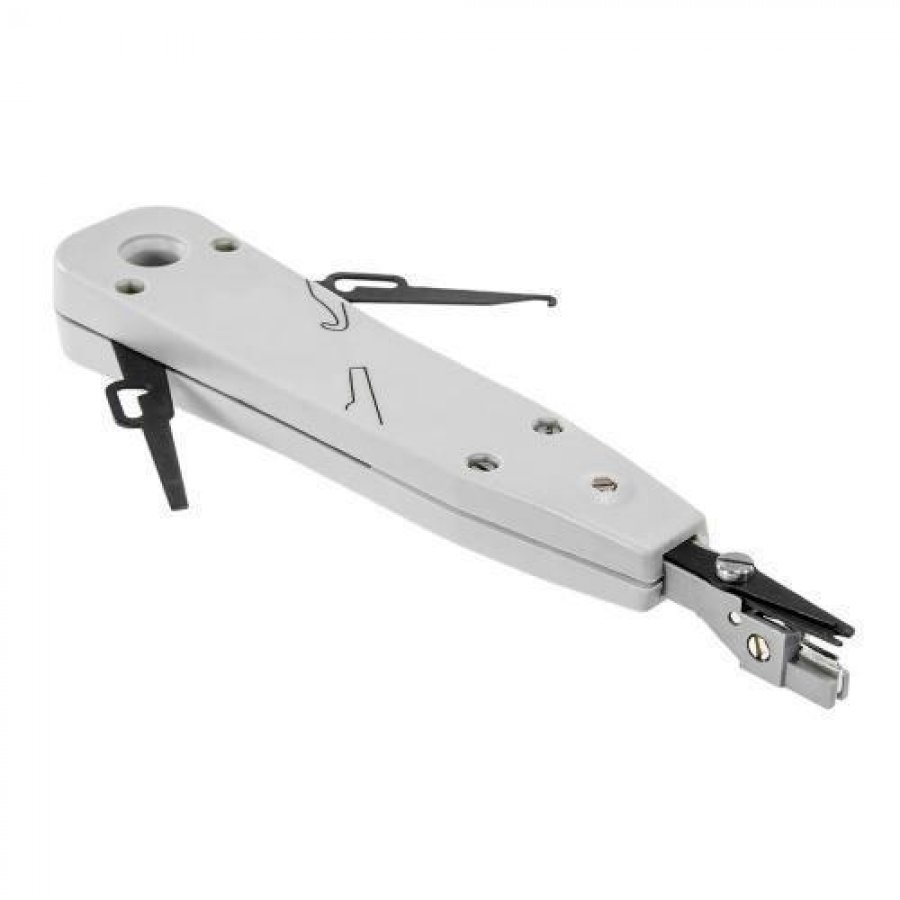 A Ferramenta possui um sistema de trava tipo tesoura que permite a conexão em série ou dupla inserção de cabos com mesmo diâmetro no mesmo par, sem o corte automático do condutor. Vem com impacto e corte frontal, chave e pinça lateral