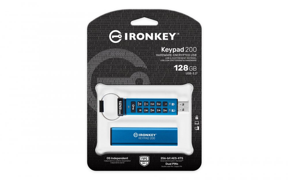 IKKP200/128GB Kingston Pendrive IronKey Keypad 200 128GB USB 3.2 FIPS 140-3 Criptografia XTS-AES de 256 bits