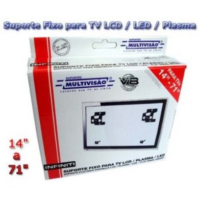 Suporte de Parede Fixo para todas as TVs LCD / PLASMA / LED de 14 a 71. Possui Sistema de Fixação UNIVERSAL adaptando-se a todos os televisores, independente da marca ou modelo, desde que tenha fixação na parte posterior. Instalado, o televisor fica 40mm distante da parede. Permite ajuste fino do televisor na horizontal de até 60mm após instalado. Acompanha Gabarito, parafuso e bucha de 0.8mm para fácil instalação.