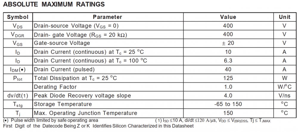 Condição de IRF740: