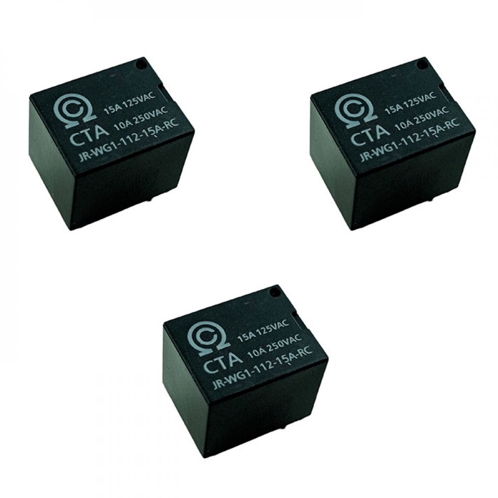 JR-WG1-112-15A-RC CTA Rele 12v 15A 5 terminais 18x15x15mm Kit 3 und Kit com 3 unidades
