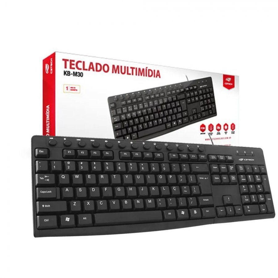 KB-M30BK C3 Tech Teclado Multimídia KB-M30BK USB Preto
