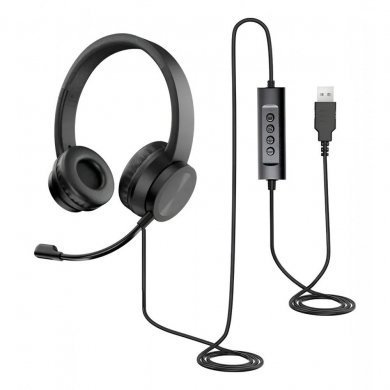 KE-HS060 Kross Headset Call Center On Ear USB preto Headset com mixer e microfone com cancelamento de ruído