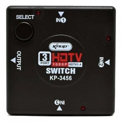 KP-3456 KNup switch HDMI FullHD com 3x entradas e 1x saída com botão seletor de canal